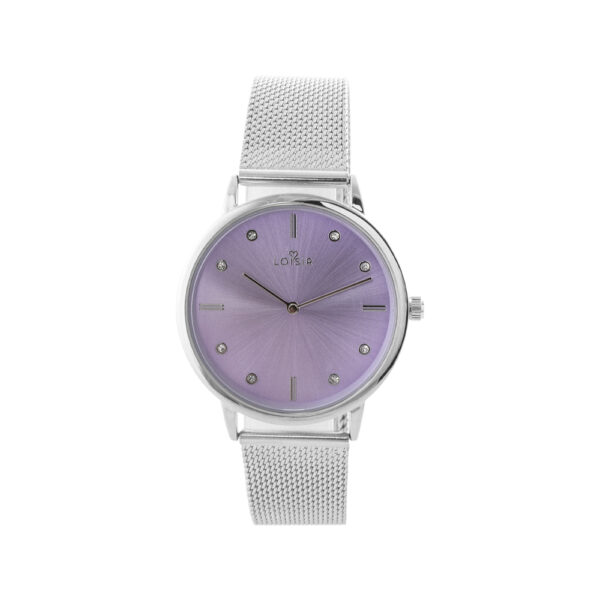 Ρολόι Fountain με ατσάλινο mesh band και λιλά καντράν